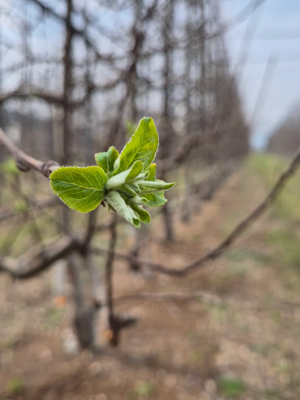 꽃샘추위에 꽃망울을 품은 사과나무 새싹